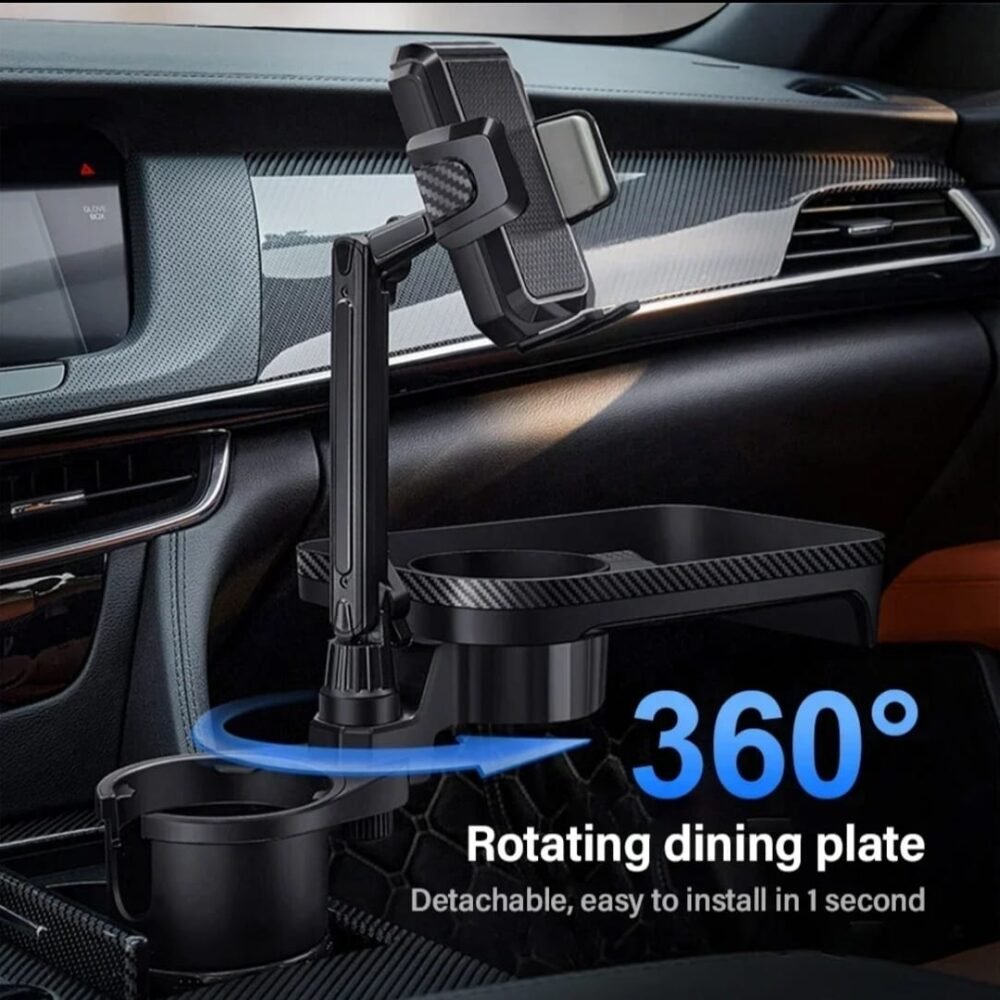 π 3-in-1 Multifunctional Design: Combines a sturdy cup holder, a spacious food tray, and a secure smartphone mount into one compact unit.